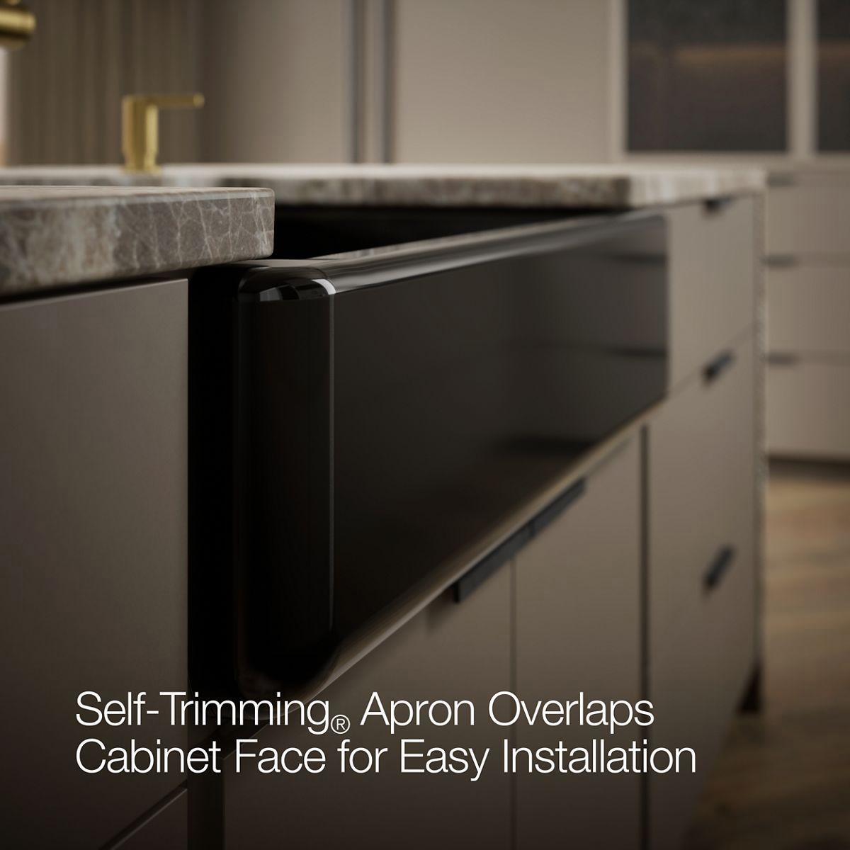 - Self-Trimming® apron overlaps cabinet face for easy installation and beautiful results.