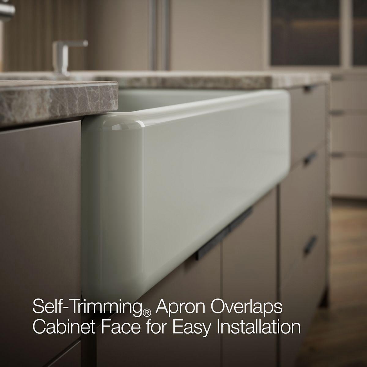 - Self-Trimming® apron overlaps cabinet face for easy installation and beautiful results.