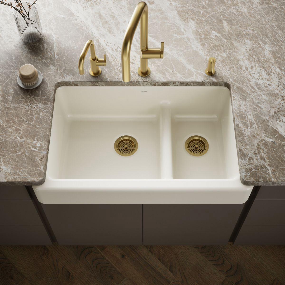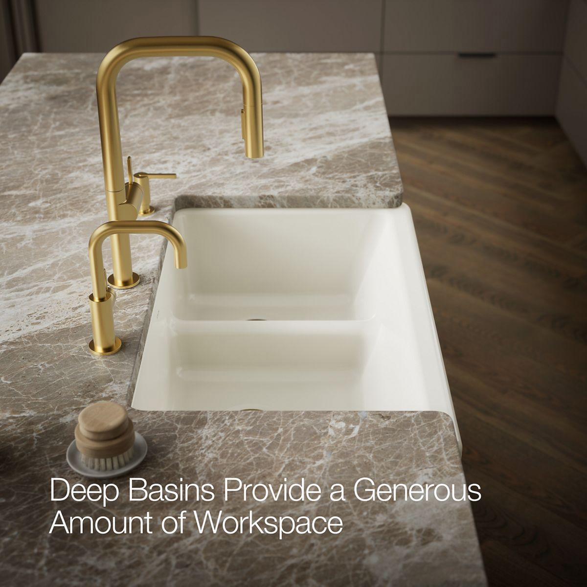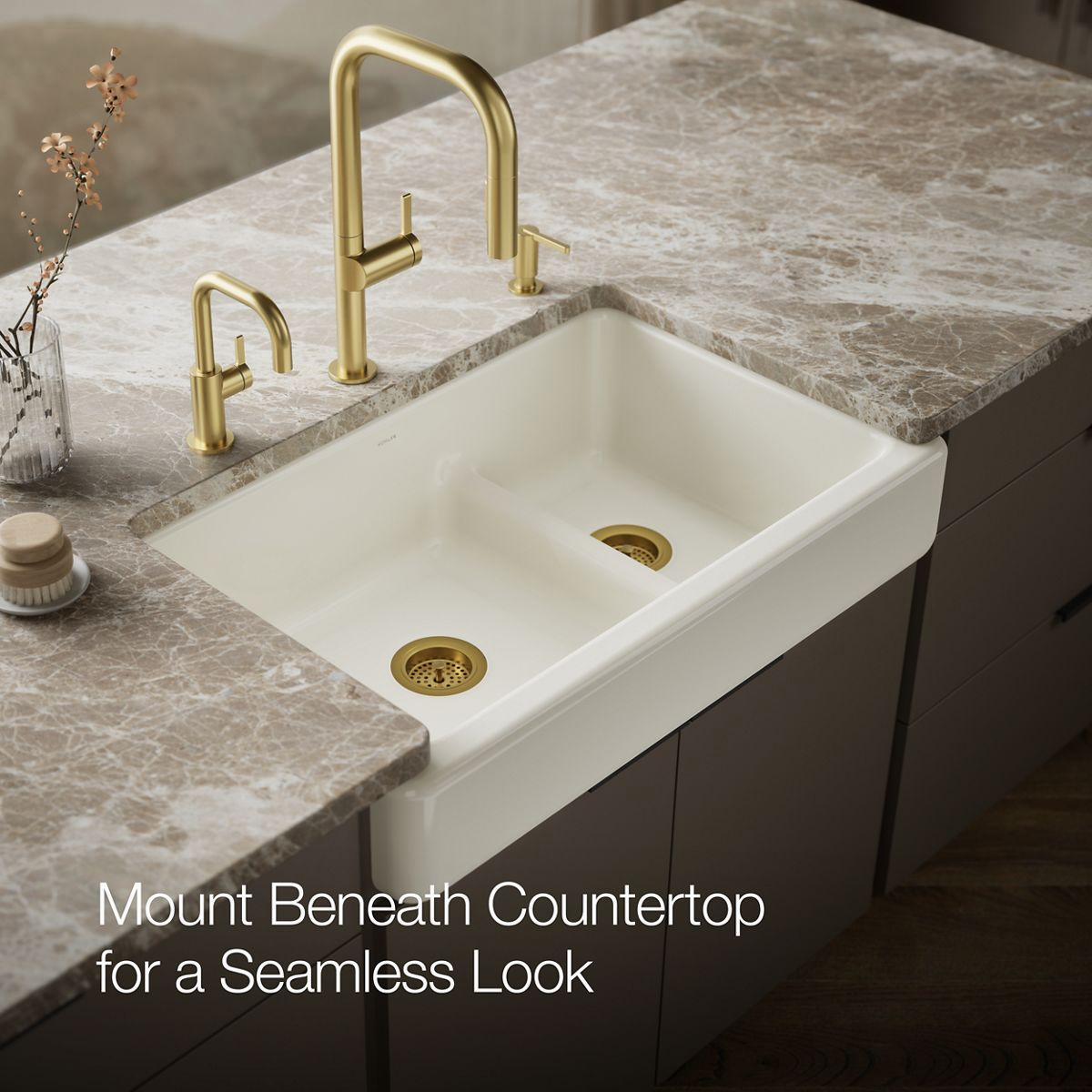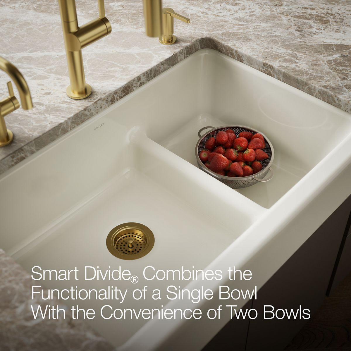 Whitehaven Smart Divide 35-1/2" 1.75 Bowl Undermount Farmhouse Kitchen Sink with Short Apron - Biscuit 6426-96 Kohler