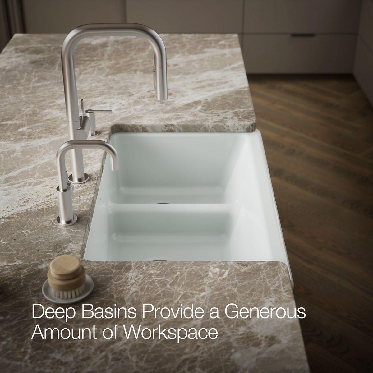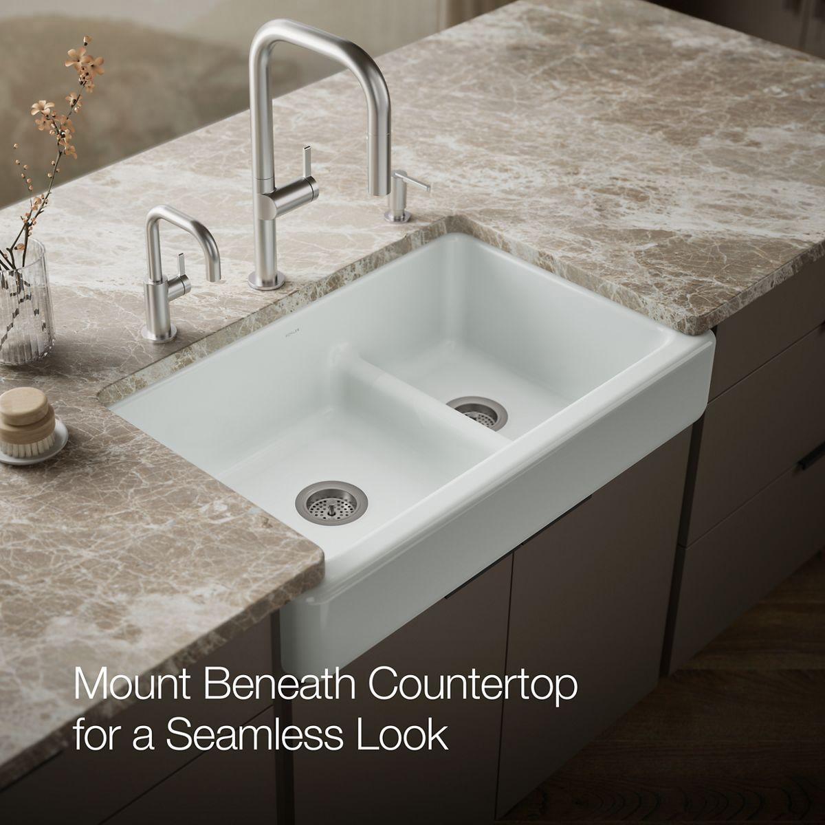 Whitehaven Smart Divide 35-1/2" 1.75 Bowl Undermount Farmhouse Kitchen Sink with Short Apron - Ice Grey 6426-95 Kohler