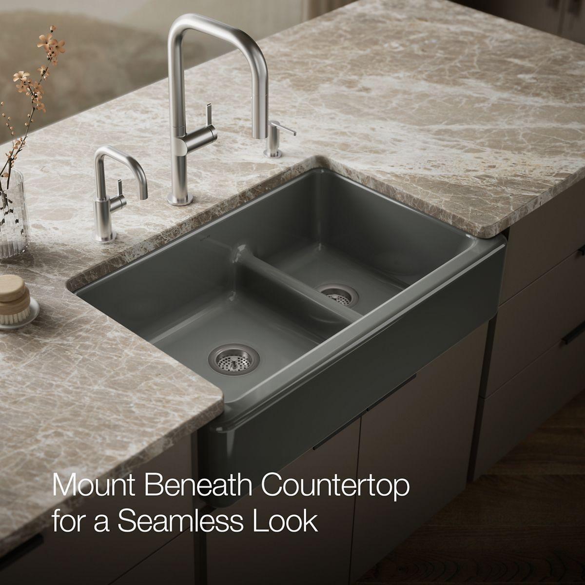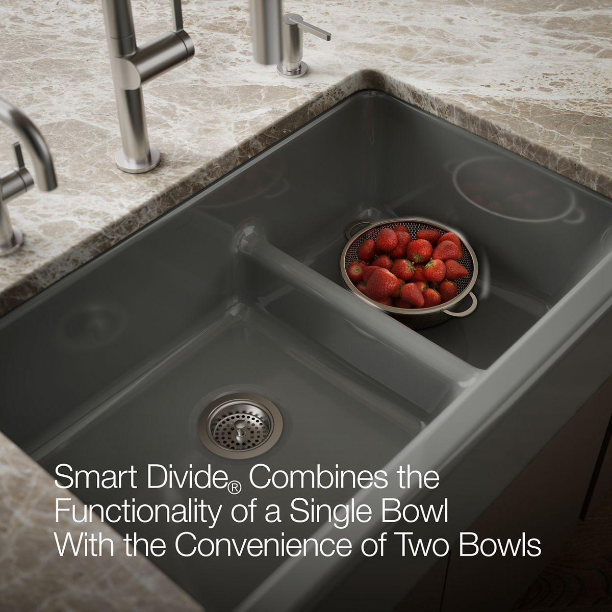 Whitehaven Smart Divide 35-3/4" 1.75 Bowl Undermount Farmhouse Kitchen Sink - Thunder Grey 6427-58 Kohler