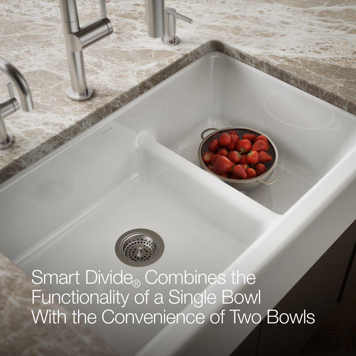 - Smart Divide® feature offers a lower bowl divider that increases workspace versatility.