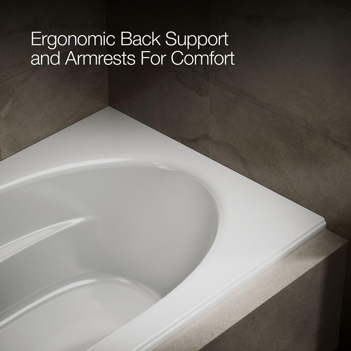 - Integral lumbar support and armrests offer extra comfort while bathing.