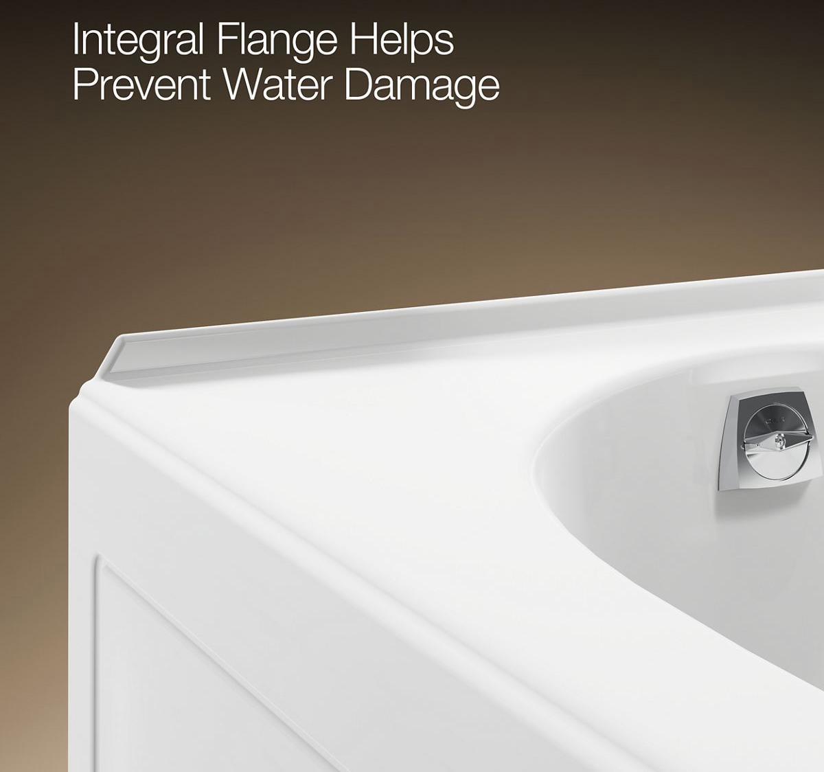 - Integral flange helps prevent water from seeping behind wall and simplifies alcove installation.