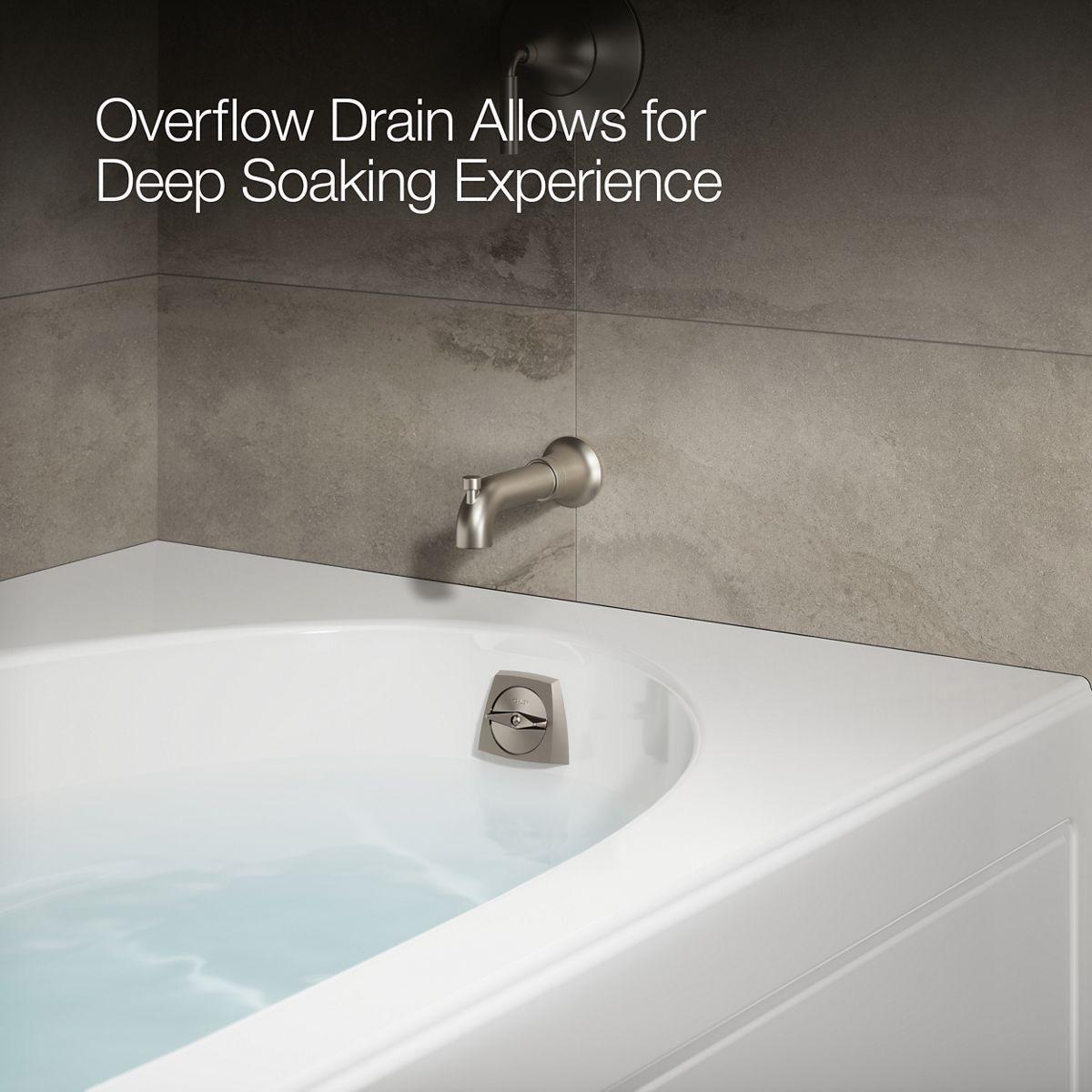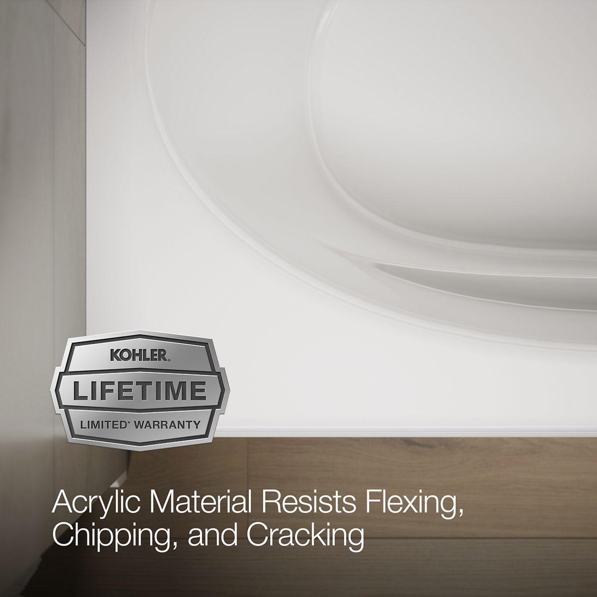 - Integral flange helps prevent water from seeping behind wall and simplifies alcove installation.