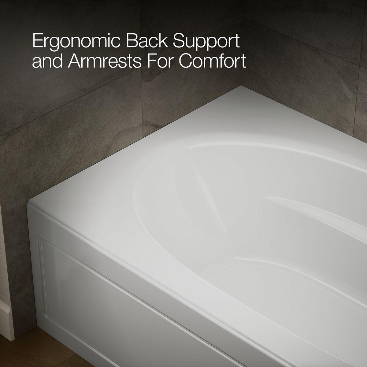 - Integral lumbar support and armrests offer extra comfort while bathing.