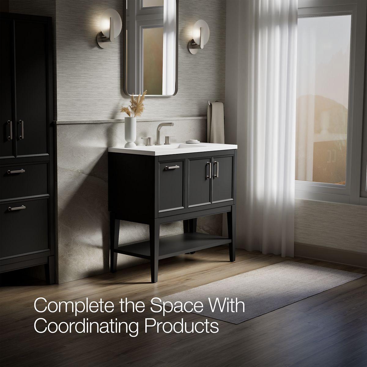 - Coordinates with K-33584 upgraded hardware finishes, K-25816 quartz backsplash, and K-25819 quartz side splash (sold separately).