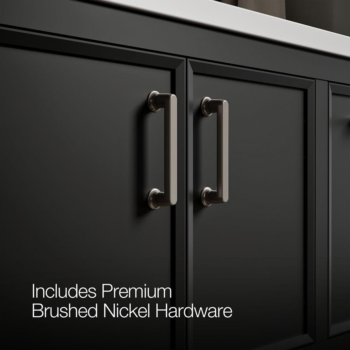 • Brushed Nickel hardware included on the White and Slate Grey vanities