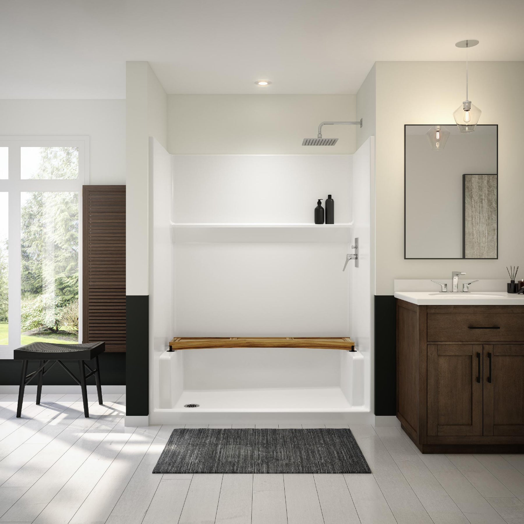 - Pair with the optional teak wood seat to add functionnality to the shower space