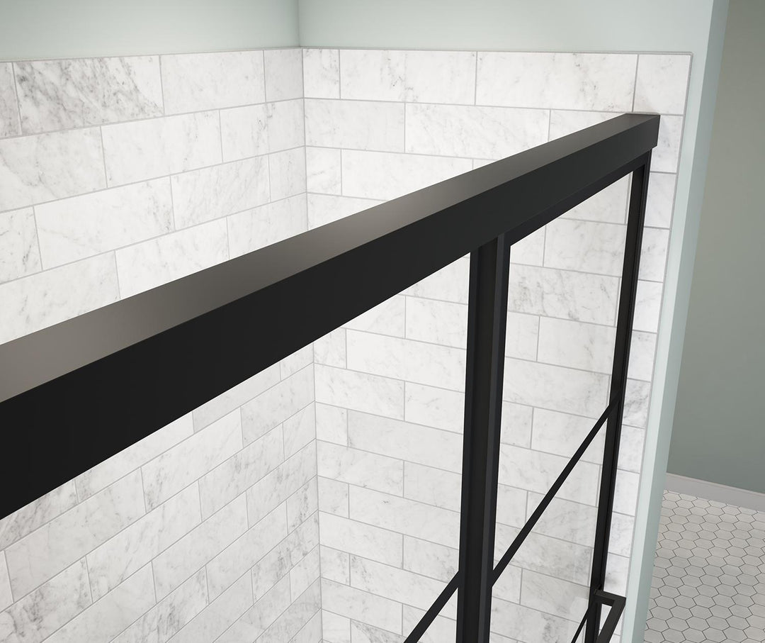 Components that connect seamlessly for an effortless assembly Expandable Sill, no cutting required to adjust Large knob on the opposite side of the handle, to allows for an easier opening and closing Hand adjustment to perfect the fit in the alcove Fits on showers with a wall height of at least 56.75in Integrated bumper at the top and the bottom Slim header and thin edges accentuate the minimalist look Safety features: top and bottom integrated bumper to prevent slamming