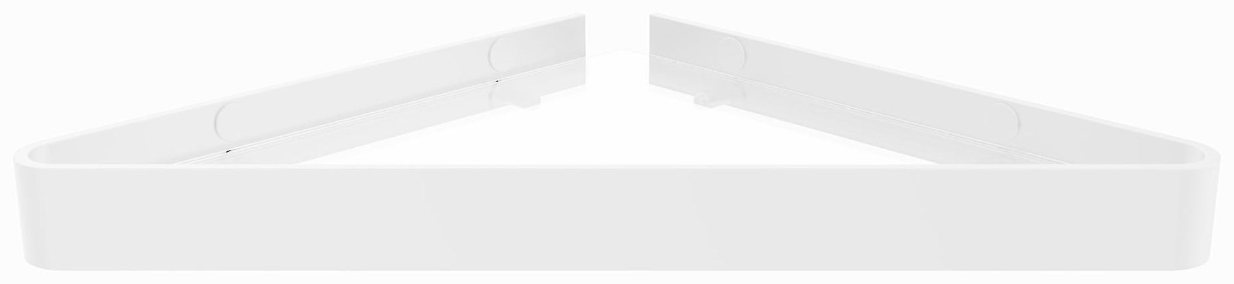 - MAAX corner triangular tempered glass and metal shelf measuring 9.6-in in length by 9.6-in in width in a classic glossy white black finish
