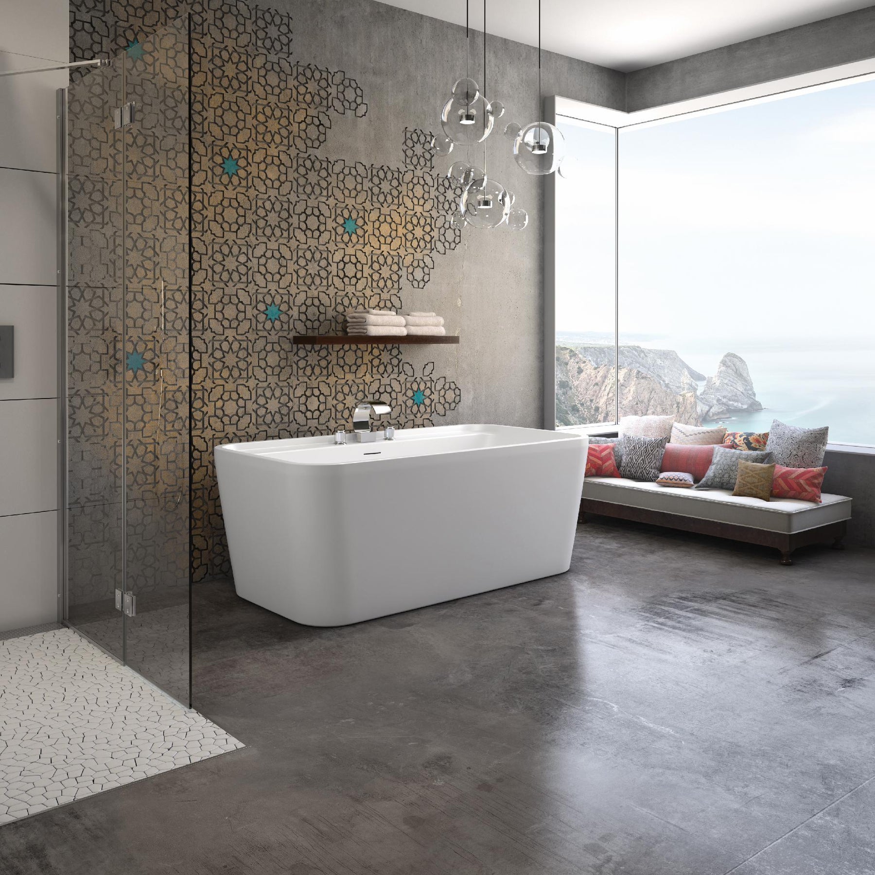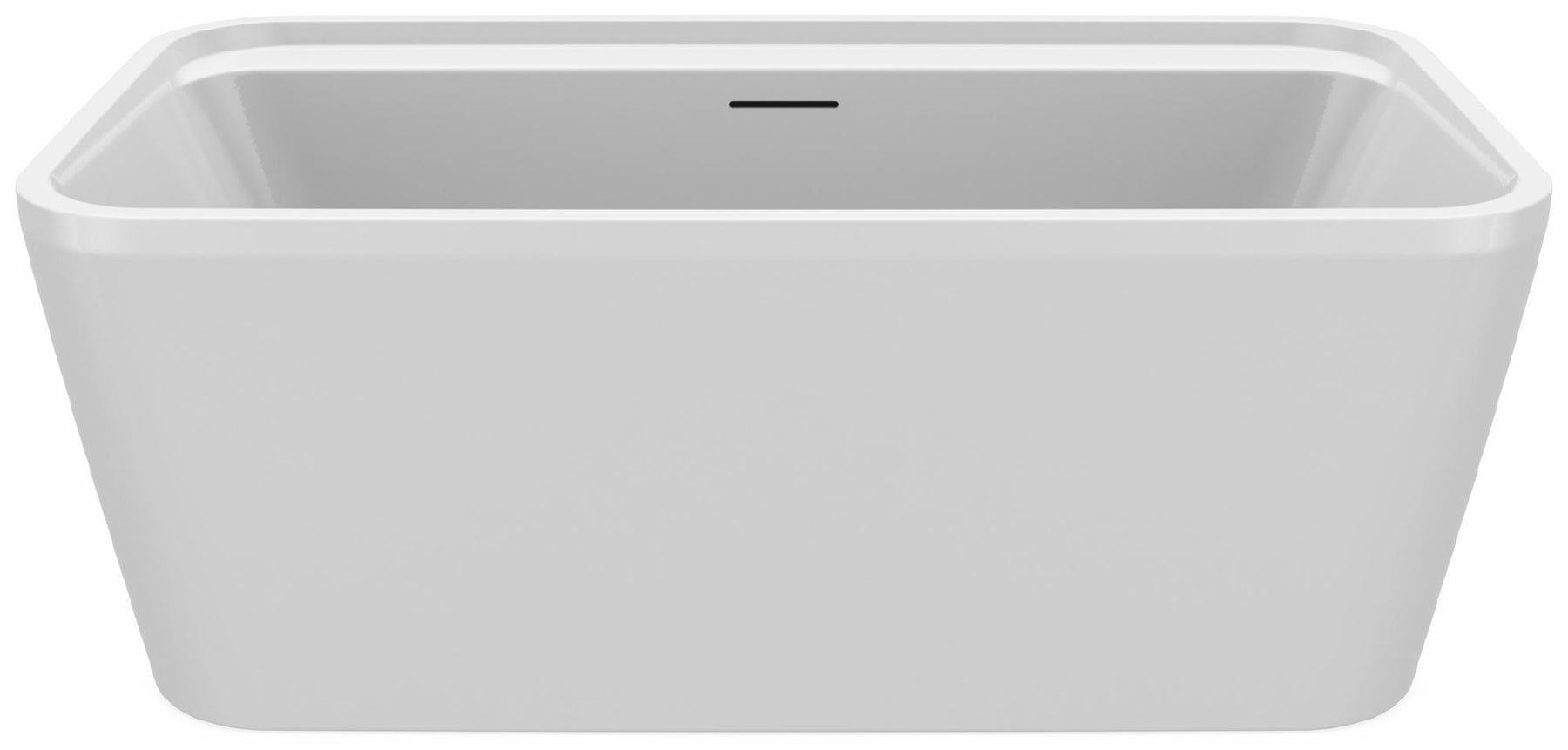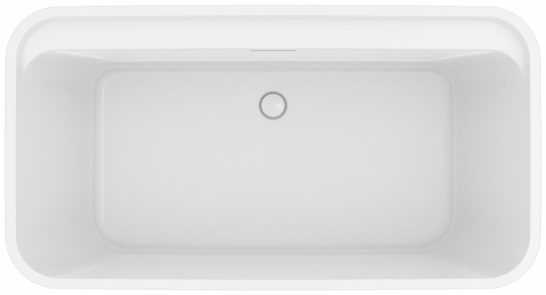 - Trimless linear overflow and white pop-up drain to match any faucet finish