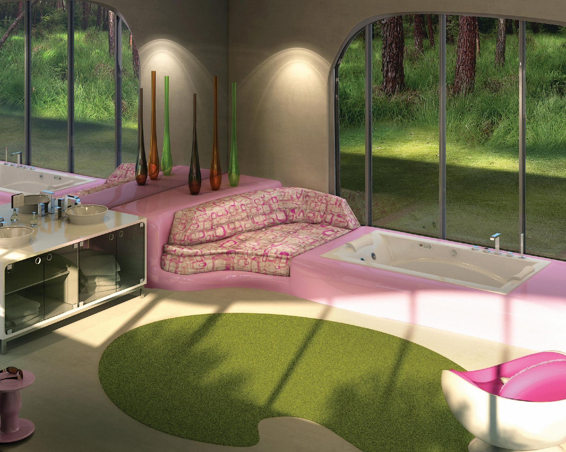 - Inclined backrest, curvaceous armrests and deep bathing well