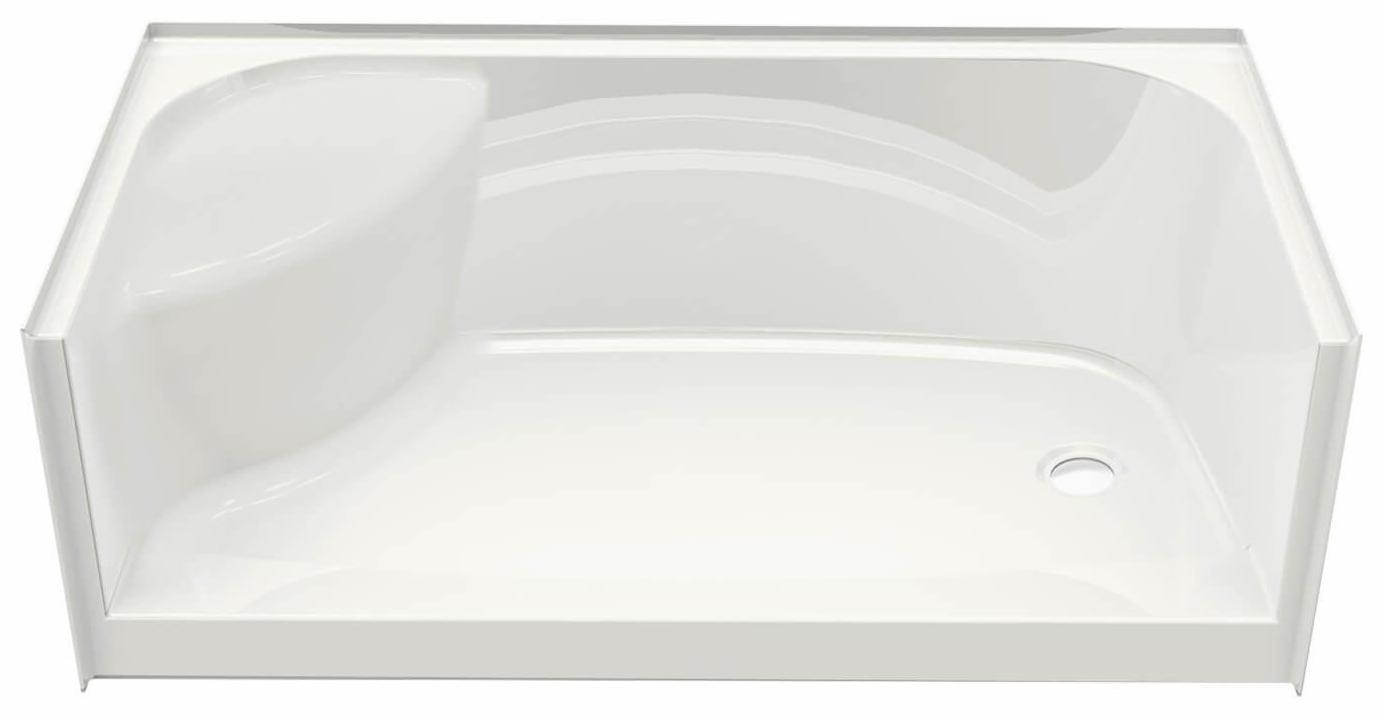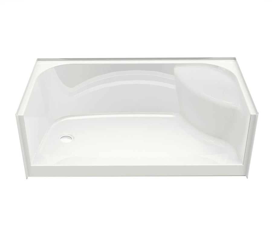 SPS 34" x 60" AcrylX RH Drain Alcove Shower Base with LH Seat - White 145044-000-002-084 Maax