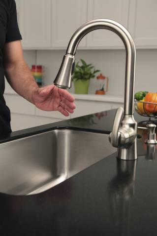 • equipped with the Reflex(TM) system for smooth operation, easy movement and secure docking of the pulldown/pullout spray head