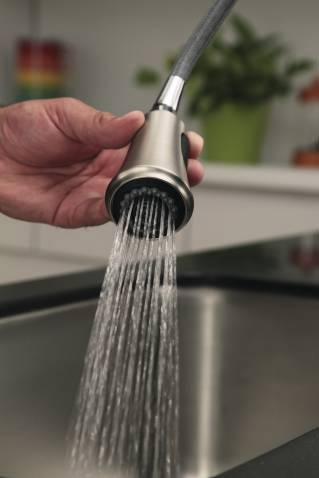 • powerful rinse for heavy-duty cleaning; pause function lets you conveniently stop water flow from the spray head; aerated stream for everyday cleaning