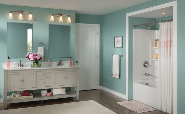 With flowing curves, the Eva collection's transitional design is pure and organic. Petal-like handles and swan-like spout bring a relaxed feeling to the bath.