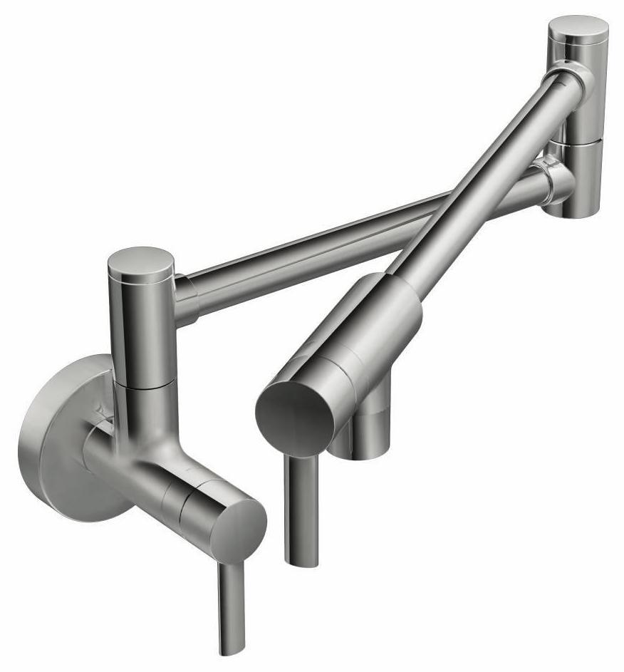 The pot filler is the ultimate epicurean luxury, ensuring convenient flow control over a cooktop. Dual joints allow for maximum reach, and dual shut-off valves mean never reaching over a hot surface to turn it off. Choose from traditional or modern styles to coordinate with your decor.