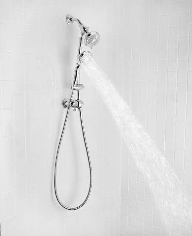 - five-function energizing spray; combination spray for more variety; relaxing spray 4" diameter spray head showerhead with handshower
