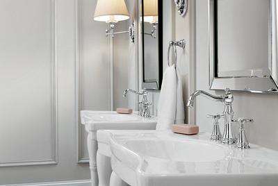 Weymouth's gracious Victorian details include porcelain inlays with antiqued decorative script and a refined shepherd's spout. Elegant, Traditional design details and distinctive finishing touches present a sense of uncommon luxury in the Weymouth collection. Distinctive accents include porcelain inlays that feature Euro-influenced decorative script and signature styling elements to make an extravagant statement in your Traditional bath. Coordinated lighting and accessories make an extravagant design statement.