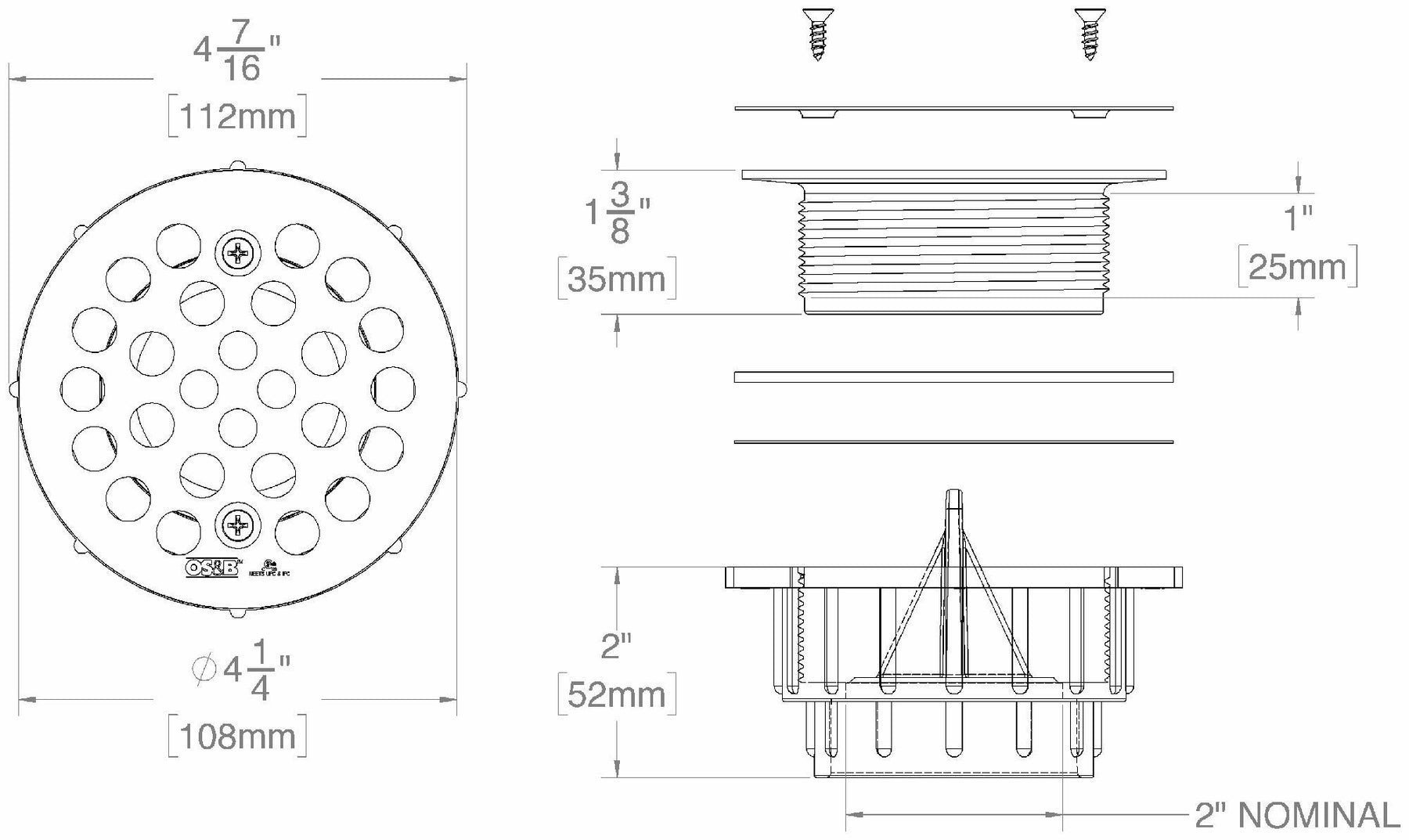 2-Piece Testable ABS Shower Drain x Hub for Molded Shower Bases - Stainless Steel SD35T-SS +osb