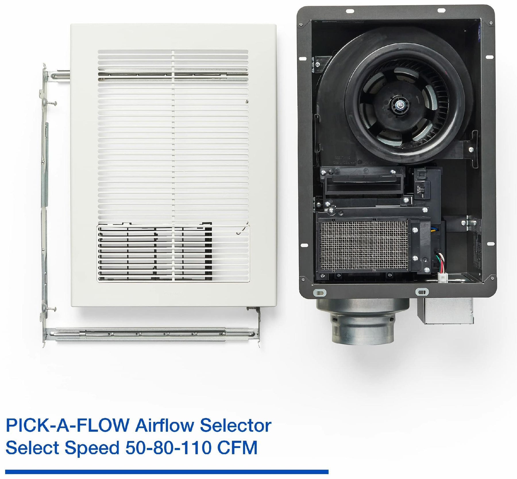 - Precision spot ventilation fan/heater incorporates a powerful ECM motor with Smartflow™ Technology for optimum CFM output
