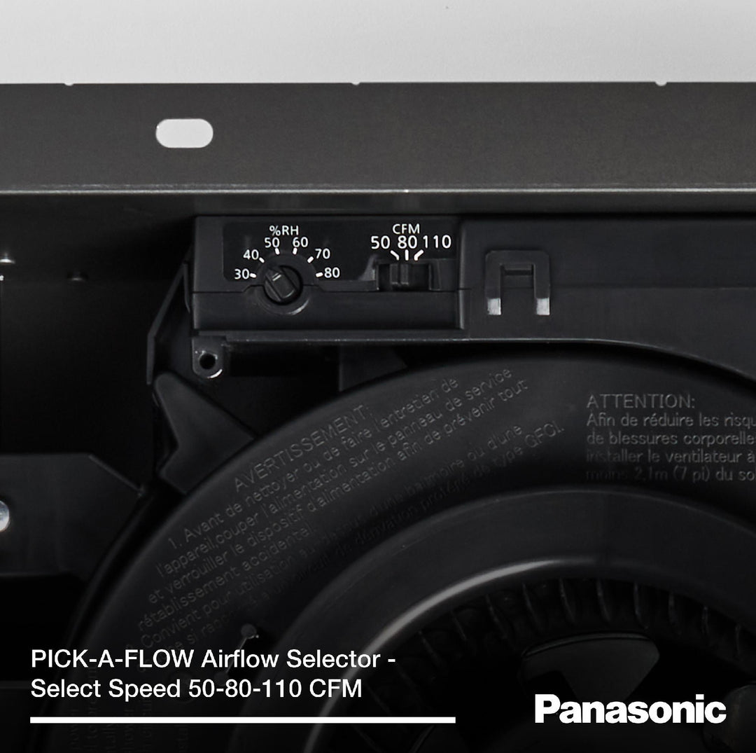 - Built-in Pick-A-Flow™ airflow selector allows you to select your required airflow of 50, 80, or 110 CFM with a simple flip of a switch