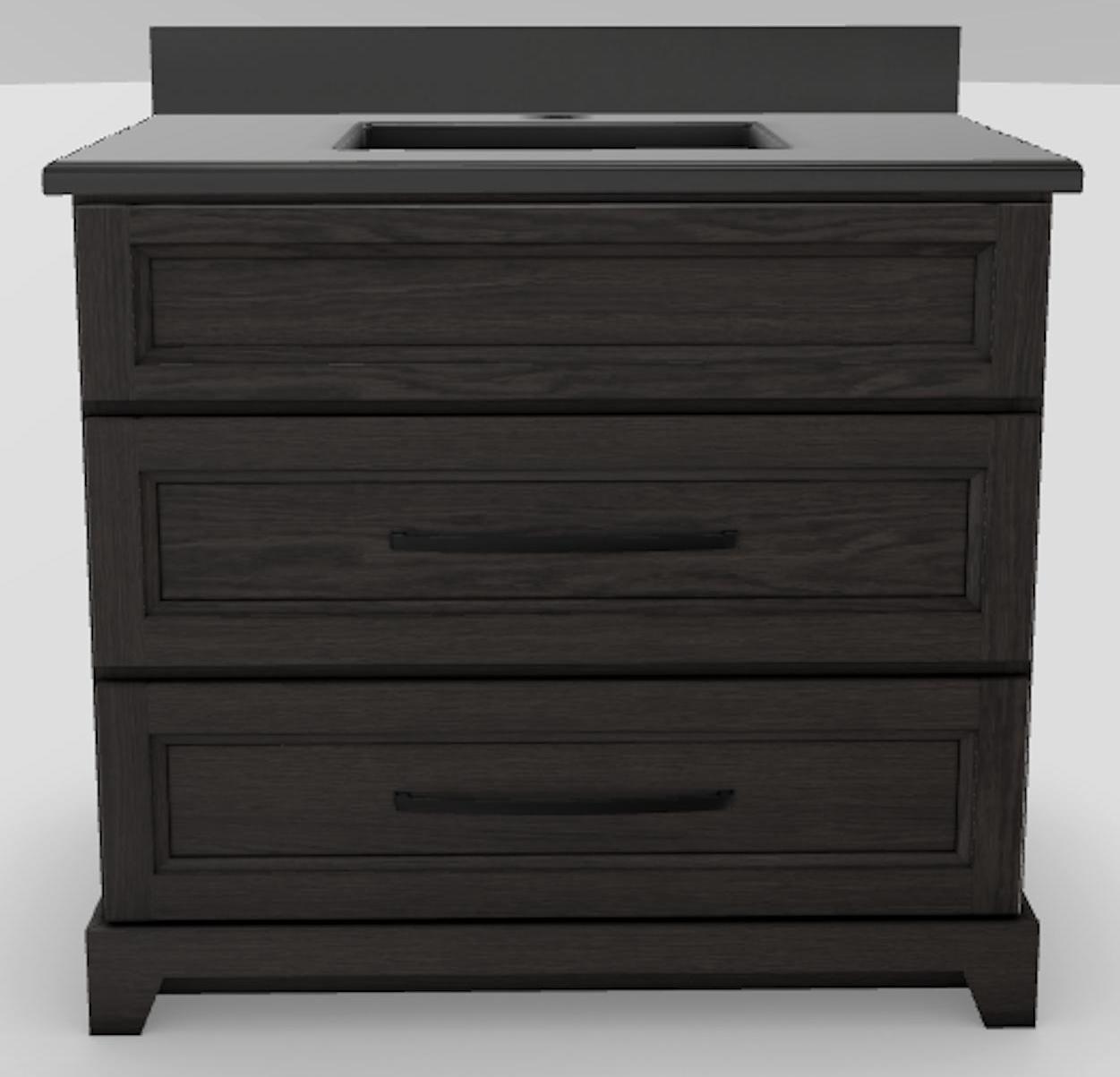 36" Dresser Standard Vanity Bellrose with Square Handles and 1-Hole Quartz Top - Urban Oak/Black/Pewter/Classic White URBAN36DRSSQBLK Stonewood Cabinetry