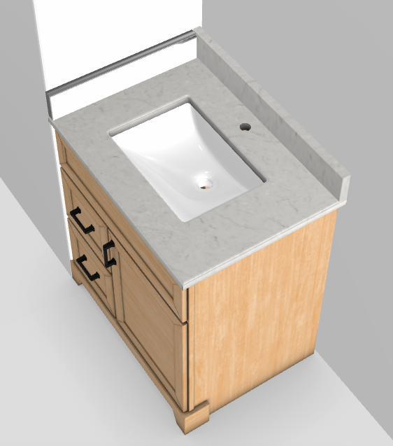 36" LH Standard Vanity Modern Shaker with Bevelled Handles and 1-Hole Quartz Top - Woodlyn/Black/Fantasy/Classic White V36LWDLNMSBVBLKFANTASY Stonewood Cabinetry