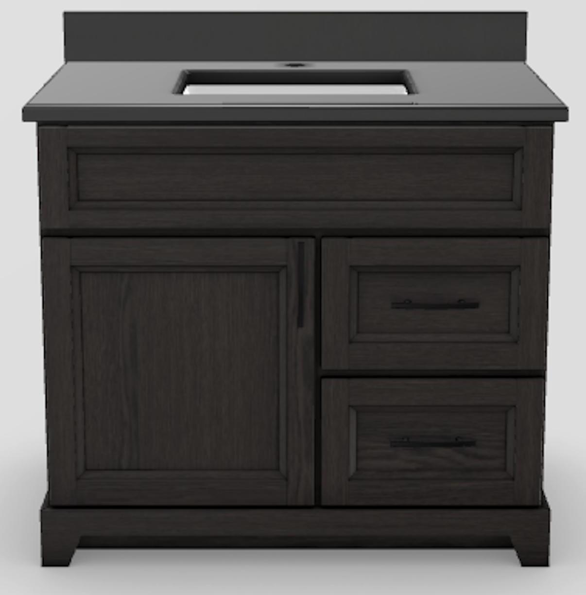36" RH Drawer Standard Vanity Bellrose with Slim Handles and 1-Hole Quartz Top - Urban Oak/Black/Pewter/Classic White UOAK36RHSLBLPEW Stonewood Cabinetry
