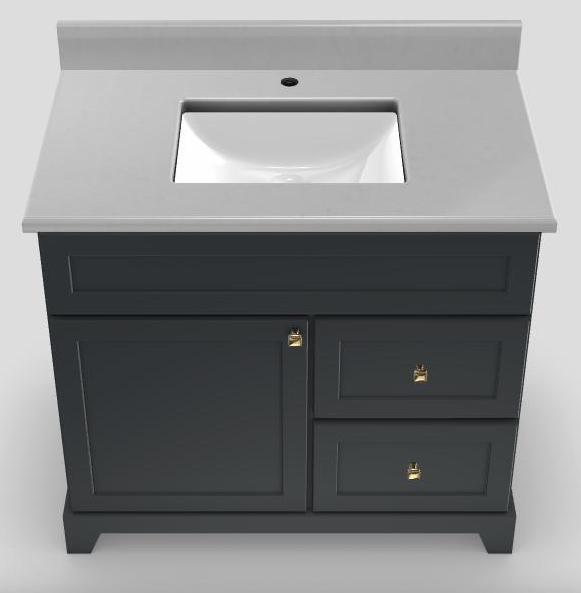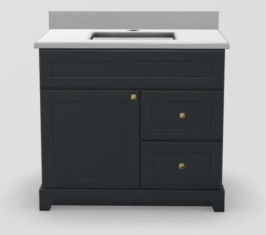 36" RH Drawer Standard Vanity Modern Shaker with Prestige Knobs - Navy Grey/Gold/Dover White/Classic White PRM36RHDWNAVYMSPRGDDOV Stonewood Cabinetry