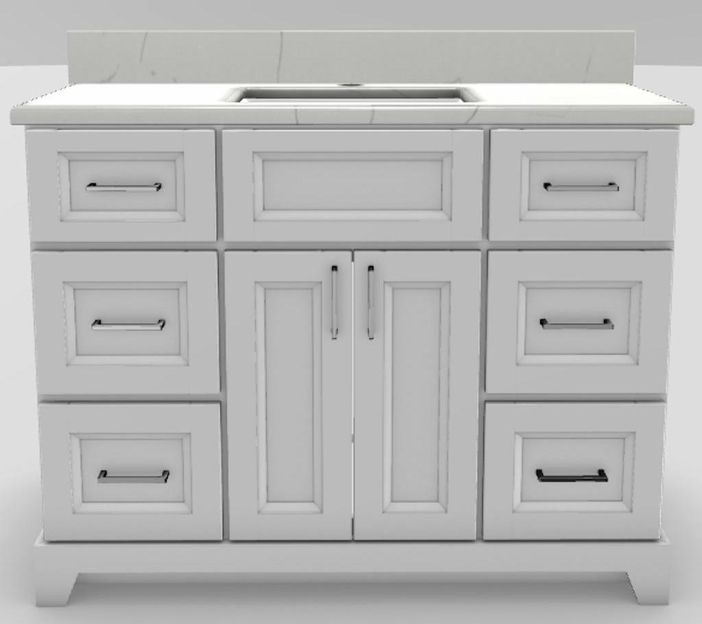 42" Shallow Vanity Bellrose with Square Handles and 1-Hole Quartz Top - White/Chrome/Carrera/Classic White 1842WHTBLSQCHRCARSINCLWH Stonewood Cabinetry