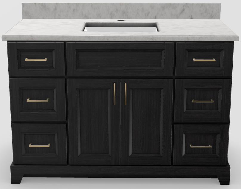 48" Shallow Vanity Bellrose with Square Handles and 1-Hole Quartz Top - Lakewood/Gold/Frosty Grey/Classic White 1848LWDSQGLDGROGRY Stonewood Cabinetry