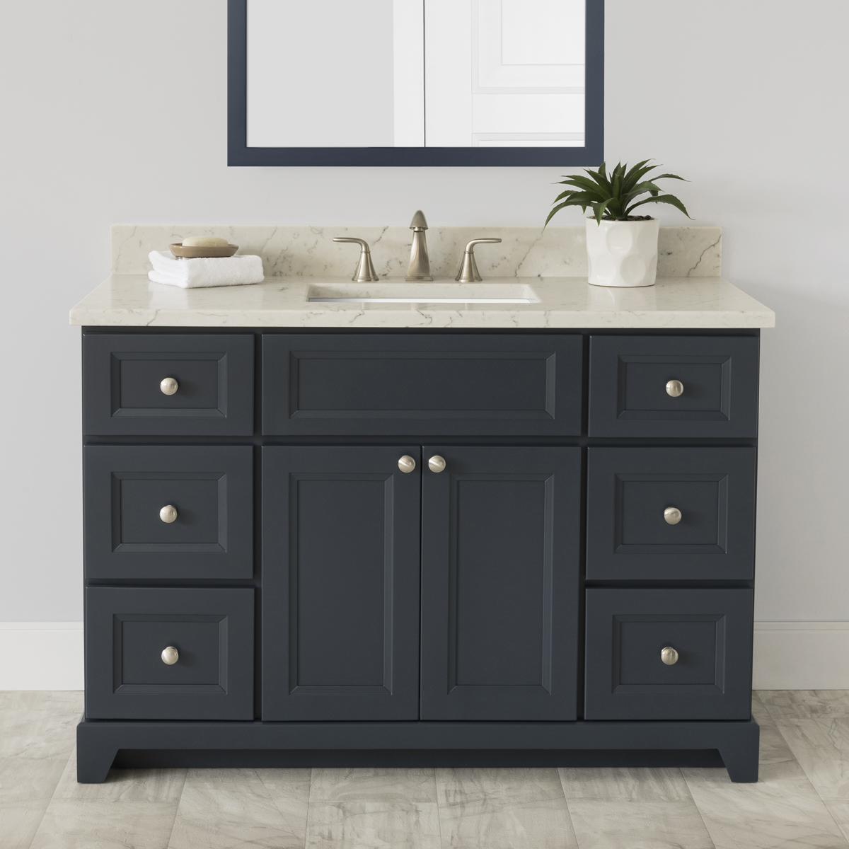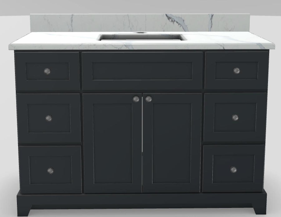 48" Standard Vanity Modern Shaker with Modern Knob Handles and 1-Hole Quartz Top - Navy Grey/Brushed Nickel/Glacier/Classic White PRE48SNGBNNVYGL Stonewood Cabinetry