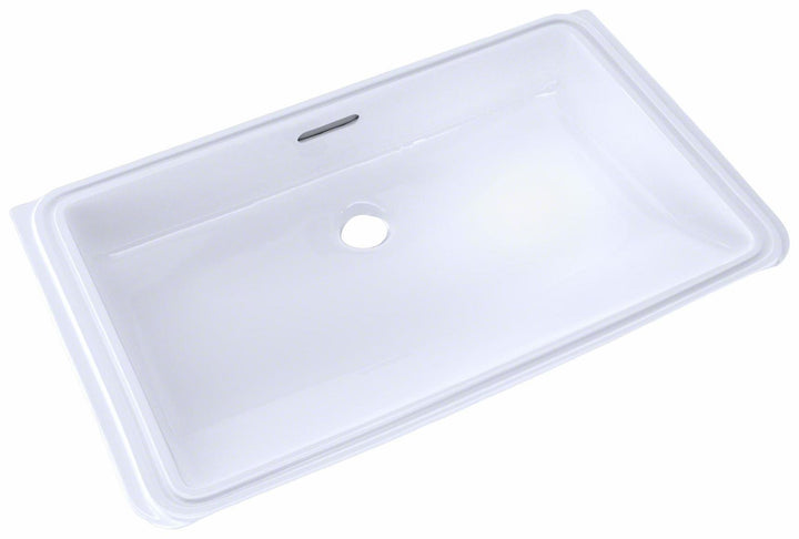 The TOTO® LT191 Rectangular Undermount Bathroom Sink with CEFIONTECT features a modern shallow basin and a large width. This sink is manufactured from vitreous china and features a rimless design. This sink is coated with TOTO's CEFIONTECT glaze, minimizing waste from sticking to ceramic surfaces, keeping your sink cleaner longer. This sink features a rear overflow and is ADA compliant.