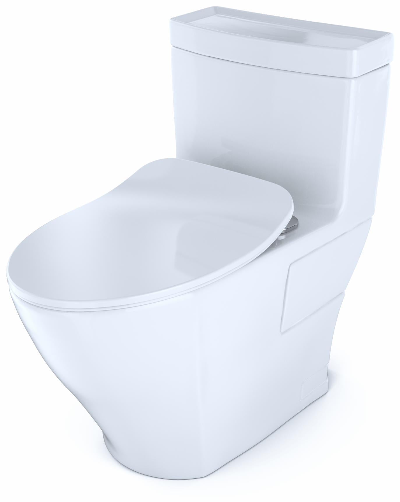 The TOTO Aimes One-Piece Elongated 1.28 GPF Universal Height Skirted Toilet with CEFIONTECT has a bold and modern high-profile design, projecting TOTO’s mark of excellence: “People Planet Water.” The TOTO Aimes features a sleek, one-piece design that will immediately beautify the appearance of your bathroom. The one-piece design is not only aesthetically pleasing, but also offers the benefit of being easier to clean versus a two-piece toilet. By removing the gap between the tank and bowl, we eliminate the hiding place for dirt and debris. An additional benefit of the one-piece toilet is that there is no threat of leaks from bolts or gaskets that can occur in two-piece toilets. The Skirted Design of the TOTO Aimes conceals the trapway, which enhances the elegant look of the toilet and adds an additional level of sophistication. Skirted Design toilets also eliminate the need to reach behind the bowl to clean the nooks and crannies of the exterior trapway. The TOTO Aimes features TOTO’s TORNADO FLUSH, a hole-free rim design with dual-nozzles that creates a centrifugal washing action that assists in rinsing the bowl more efficiently. This version of the TOTO Aimes includes CEFIONTECT, a layer of ceramic glaze that minimizes waste from sticking to ceramic surfaces. This feature, coupled with TORNADO FLUSH, assists to reduce the frequency of toilet cleanings, minimizing the usage of water, harsh chemicals, and time required for cleaning. The TOTO Aimes is designed in TOTO’s Universal Height, which allows for a more comfortable seat position across a wide range of users. This version of the Aimes offers TOTO T40 WASHLET+ compatibility for when you are ready to upgrade. WASHLET+ toilets feature a channel on the bowl surface to help conceal your WASHLET+ supply line and power cord for seamless integration. The Aimes comes ready for install into a 12" rough-in, but may be adapted for a 10" or 14" rough-in with the purchase of a separately sold adapter. The Aimes is ADA compliant and meets the standards for EPA WaterSense, and California’s CEC and CALGreen requirements. The TOTO Aimes has a left-hand chrome trip lever and includes TOTO's brand new ultra slim SoftClose seat, SS234. Additional items needed for installation and use must be purchased separately: wax ring, toilet mounting bolts, and water supply lines.