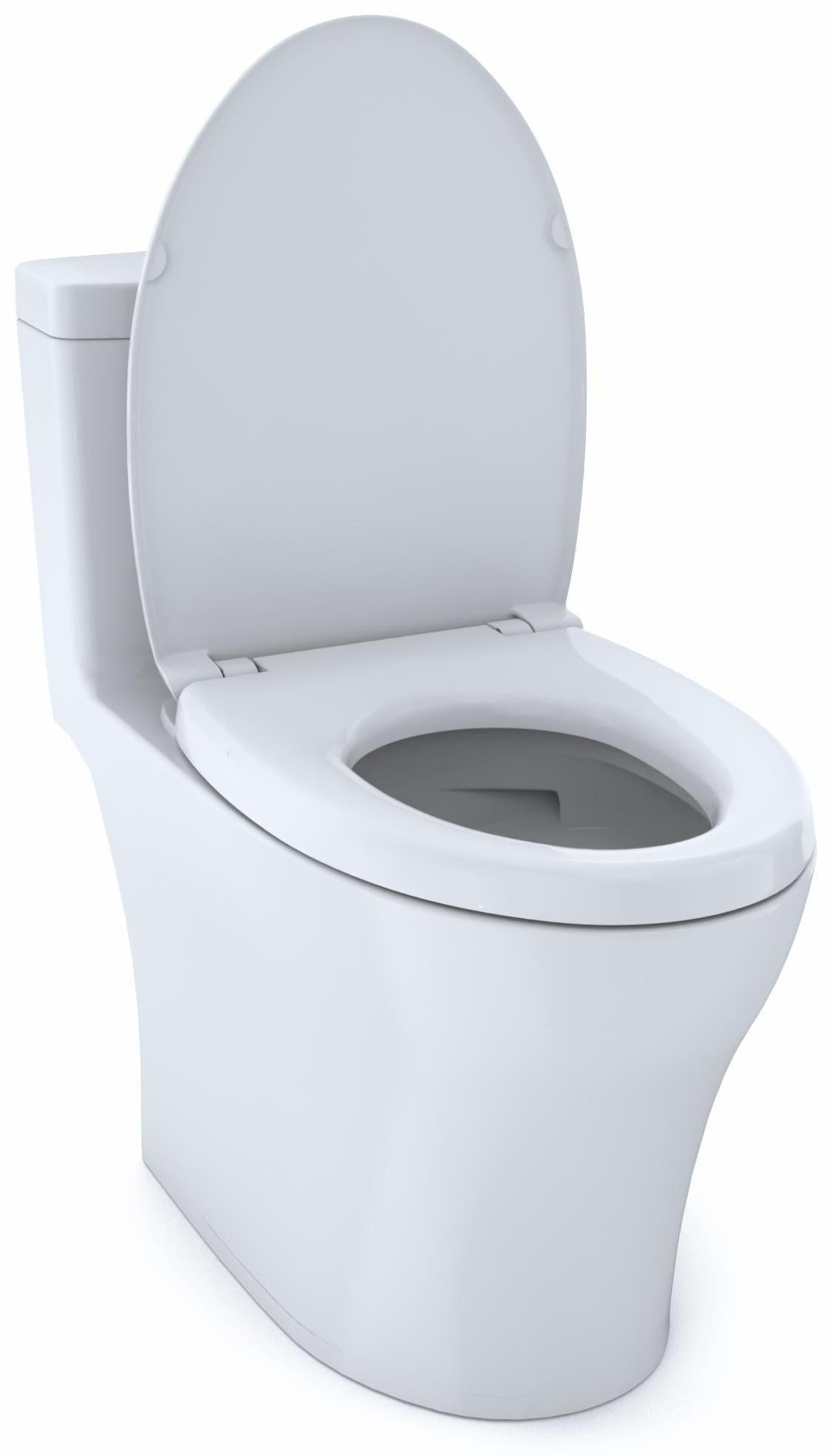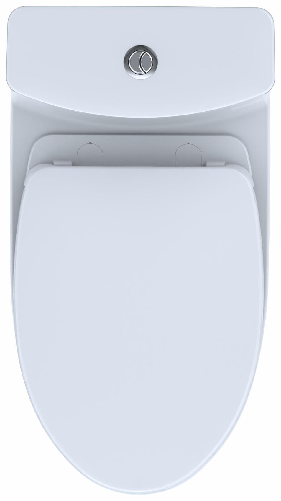 The Aquia IV One-Piece Elongated Dual Flush 1.28 and 0.8 GPF Universal Height WASHLET + Ready Toilet with CEFIONTECT is the epitome of modern form and function. The skirted design conceals the trapway, which enhances the elegant look of the toilet and adds an additional level of sophistication. The one-piece design is not only aesthetically pleasing, but also offers the benefit of being easier to clean versus a two-piece toilet. By removing the gap between the tank and bowl, we eliminate the hiding place for dirt and debris. An additional benefit of the one-piece toilet is that there is no threat of leaks from bolts or gaskets that can occur in two-piece toilets. The Aquia IV features TOTO’s DYNAMAX TORNADO FLUSH, utilizing a 360 degree cleaning power to reach every part of the bowl. This version of the Aquia IV includes CEFIONTECT technology, a layer of ceramic glaze that minimizes waste from sticking to ceramic surfaces. This feature, coupled with DYNAMAX TORNADO FLUSH, helps to reduce the frequency of toilet cleanings, minimizing the usage of water, harsh chemicals, and time required for cleaning. The enhanced design of the Aquia IV inner bowl reduces water flow resistance and turbulence, resulting in a quieter flush. The chrome center-mounted push button that sits atop of the tank allows you to proactively conserve water by choosing between a 0.8 GPF rinse or 1.28 GPF for tougher jobs. This version of the Aquia IV offers TOTO T40 WASHLET+ compatibility for when you are ready to upgrade. WASHLET+ toilets feature a channel on the bowl surface to help conceal your WASHLET+ supply line and power cord for seamless integration. The Universal Height design allows for a more comfortable seat position across a wide range of users. The TOTO Aquia IV meets the standards for EPA WaterSense , and California’s CEC and CALGreen requirements. The Aquia IV comes ready for install into a 12" rough-in, but may be adapted for a 10" or 14" rough-in with the purchase of a separately sold adapter. Includes a SoftClose toilet seat (#SS124). Additional items needed for installation and use must be purchased separately: wax ring, toilet mounting bolts, and water supply lines.
