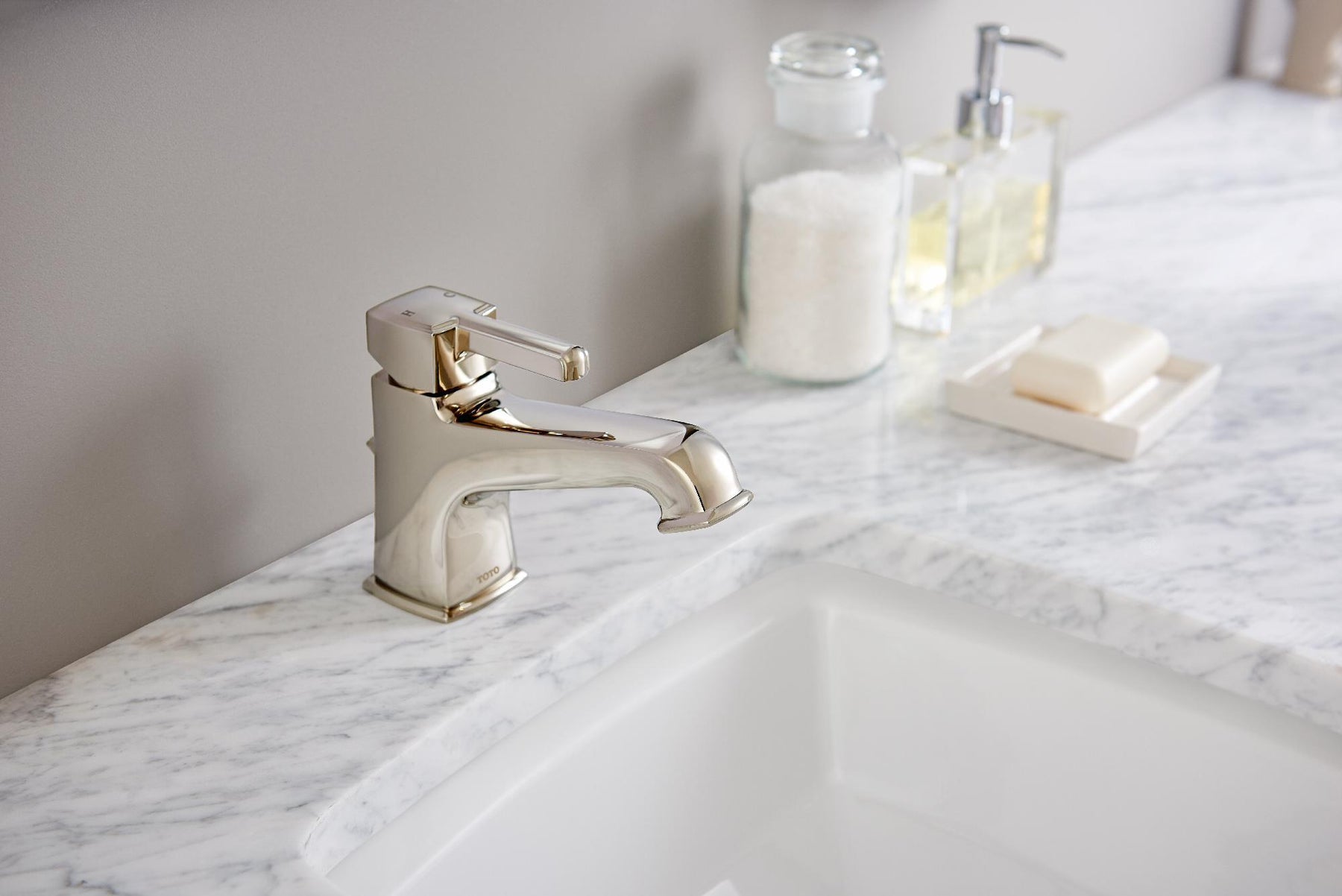The TOTO Connelly Single Handle 1.5 GPM Bathroom Sink Faucet is elegantly designed in a modern, angular style that will work in any bathroom space. With its solid construction and finish, the Connelly single handle faucet will add beauty and elegance for years to come. The single lever allows for complete control over water volume and temperature. The aerated 1.5 GPM flow rate enables you to conserve water, yet does not diminish the performance of the faucet. The faucet is WaterSense certified and ADA compliant. Included parts: Spout and lever, metal pop-up drain and rod, and water supply hoses.