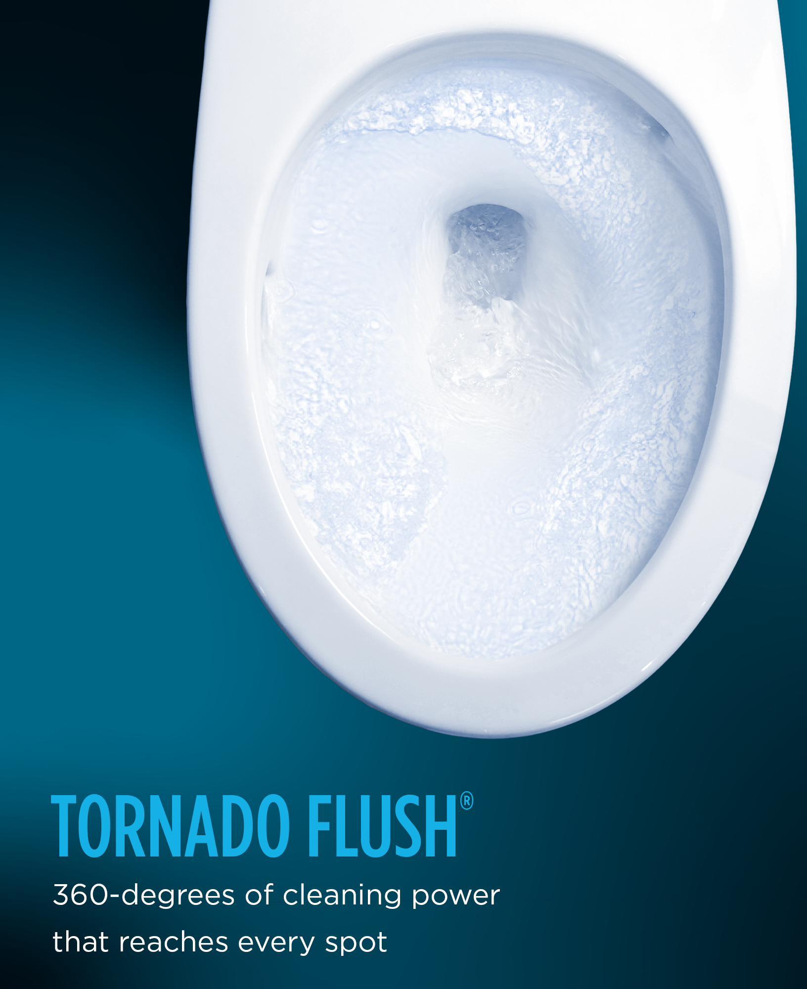 - Ultra-high efficiency TORNADO FLUSH® siphon jet flushing system