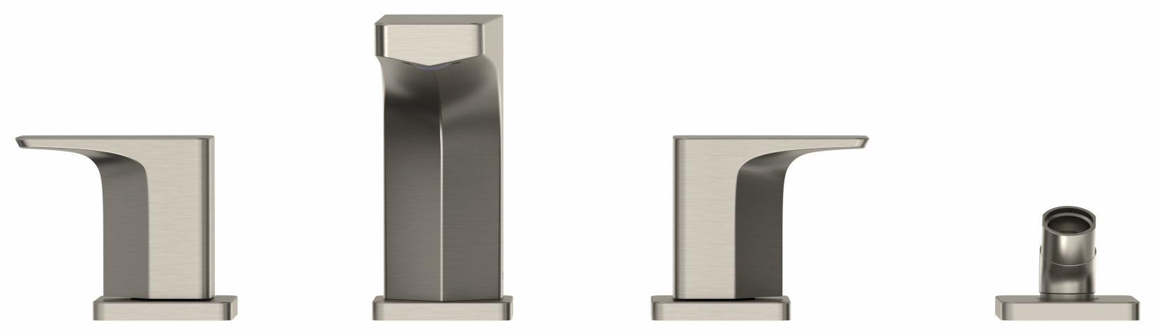 Inspired by culture, the TOTO Global Edge Two-Handle Roman Tub Filler Trim with Handshower fits perfectly within the TOTO design philosophy of “Understated, but Essential” by blending premium quality and performance. The V-shaped edge flows all the way up to the spout tip, emphasizing the beauty of the metal by adding texture. The tub spout features a solid brass construction and a laminar flow which ensures an evenly distributed water stream. With the purchase of the separately sold connection tubes, the tub filler is adjustable for various width installations, allowing flexibility and versatility within your bathroom space. The double levers provide easy handling and complete control over water volume and temperature. Designed with low-conductivity materials for parts that come into contact with the handle. This safe design inhibits the heat flow, keeping the handle from getting too warm. Included items: spout, handles, handshower mount and hose. Purchased separately: TBN02203U rough-in valve, connection tubes, and handshower.
