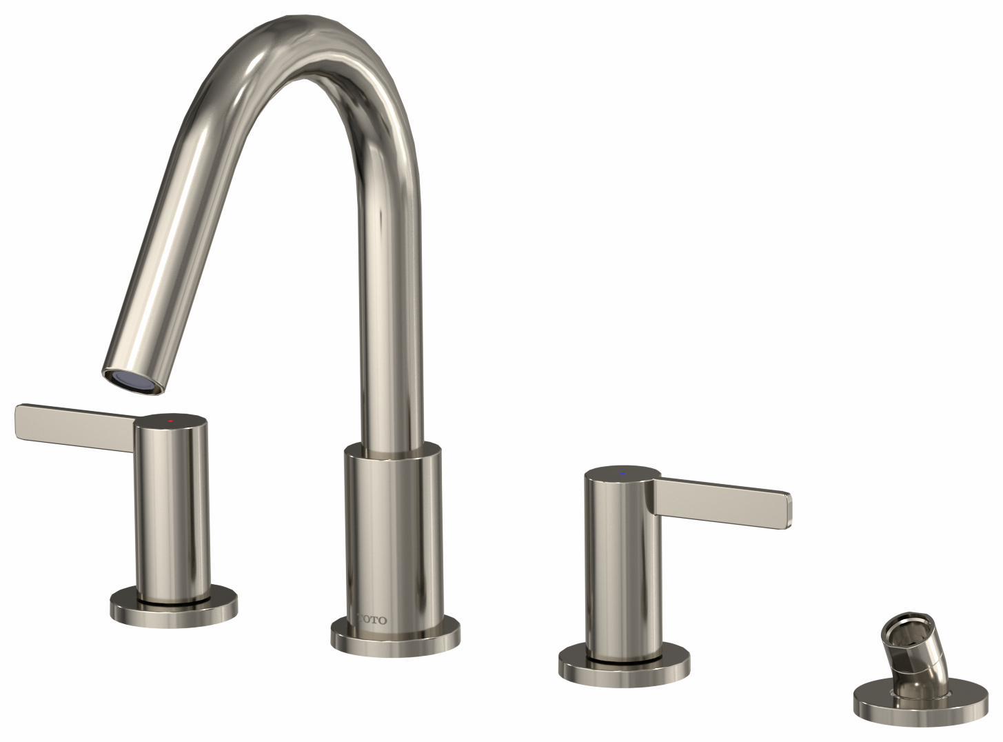 Inspired by culture, the TOTO GF Two Lever Handle Roman Tub Filler Trim with Handshower fits perfectly within the TOTO design philosophy of “Understated, but Essential” by blending premium quality and performance. The solid construction and cascading curves offer a beautiful and durable bathroom fixture. The tub spout features a solid brass construction and a laminar flow which ensures an evenly distributed water stream. With the purchase of the separately sold connection tubes, the tub filler is adjustable for various width installations, allowing flexibility and versatility within your bathroom space. The double levers provide easy handling and complete control over water volume and temperature. Designed with low-conductivity materials for parts that come into contact with the handle. This safe design inhibits the heat flow, keeping the handle from getting too warm. Included items: spout, handles, handshower mount and hose. Purchased separately: TBN02203U rough-in valve, connection tubes, and handshower.