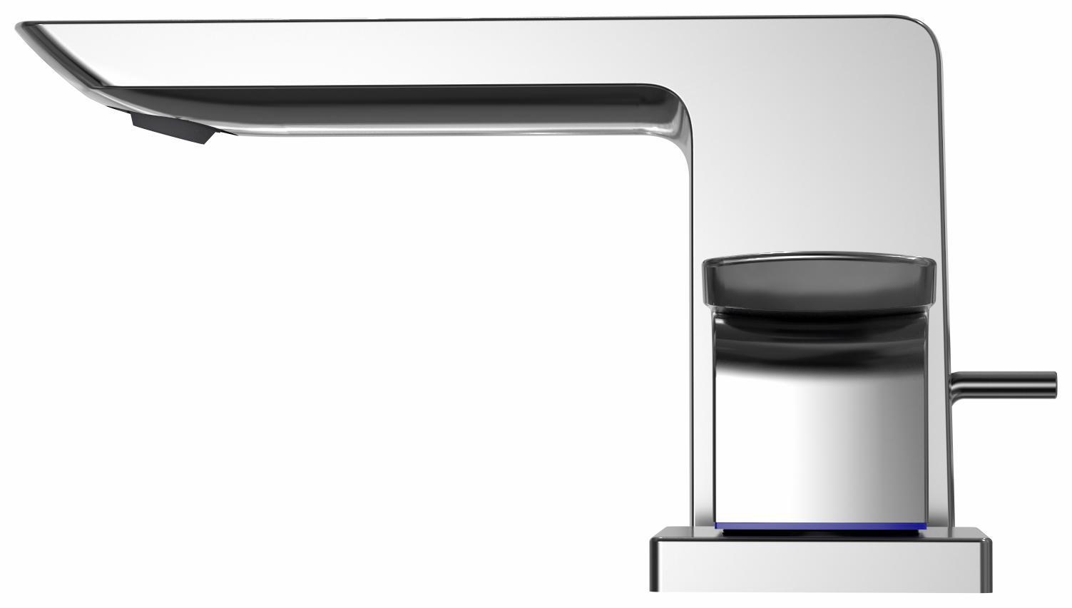 - Sleek and bold single handle faucet for semi-vessel sinks