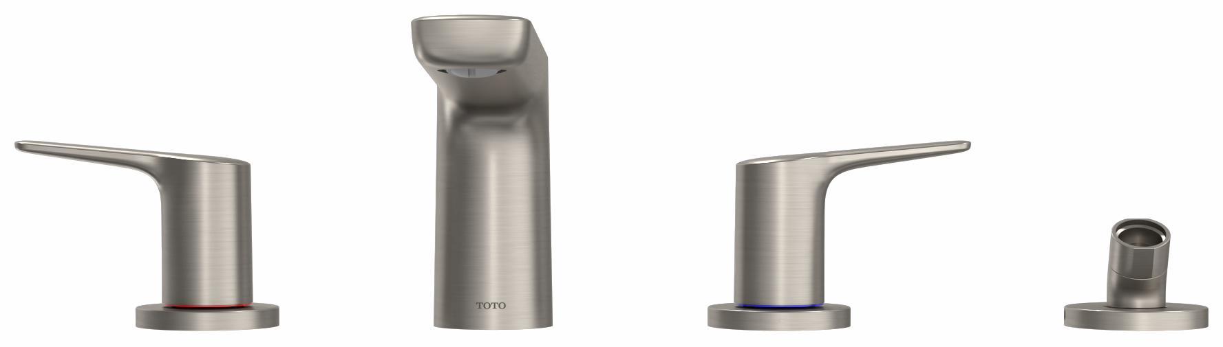 With its smooth organic lines and a modern twist on a classic design, the TOTO GS Four-hole Deck-Mount Roman Tub Filler Trim with Handshower will set the standard for every day beauty. With the purchase of the separately sold connection tubes, the tub filler is adjustable for various width installations, allowing flexibility and versatility within your bathroom space. The GS tub spout uses low-conductivity materials for parts that come into contact with the handle. This safe design inhibits the heat flow, keeping the handle from getting too warm. The double levers allow for complete control over water volume and temperature. Included items: spout, handles, handshower mount and hose. Purchased separately: TBN01202U rough-in valve, connection tubes, and handshower