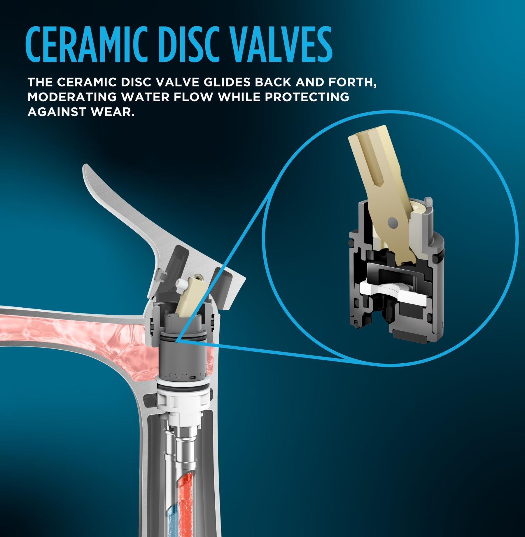 - A SMOOTH OPERATOR - The faucet features a ceramic disc valve that glides back and forth, moderating water flow while protecting against wear. A lifetime of smooth handle control at your fingertips.