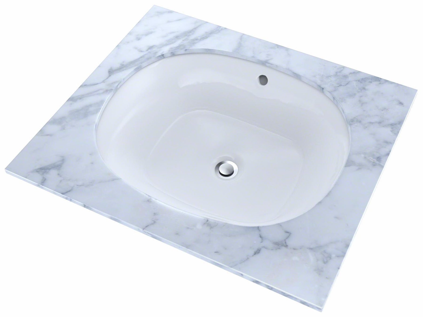 The TOTO® Maris™ Large Oval Undermount Bathroom Sink with CEFIONTECT features a large oval basin with rear overflow. The soft sloping curves help create a spa-like environment. This version of the Maris sink features TOTO's CEFIONTECT glaze, minimizing waste from adhering to ceramic surfaces, keeping your sink cleaner longer. The Maris sink is ADA compliant.