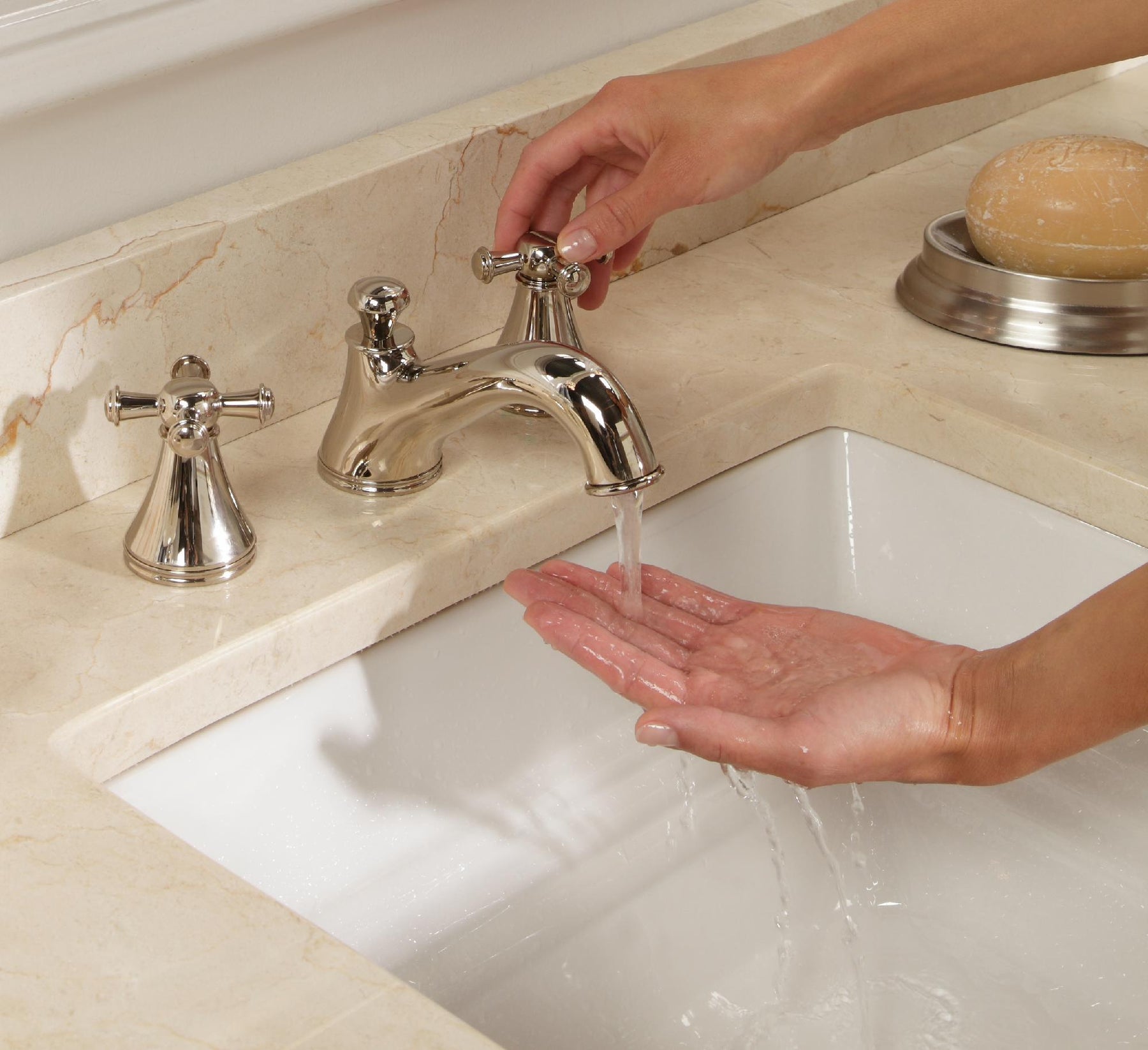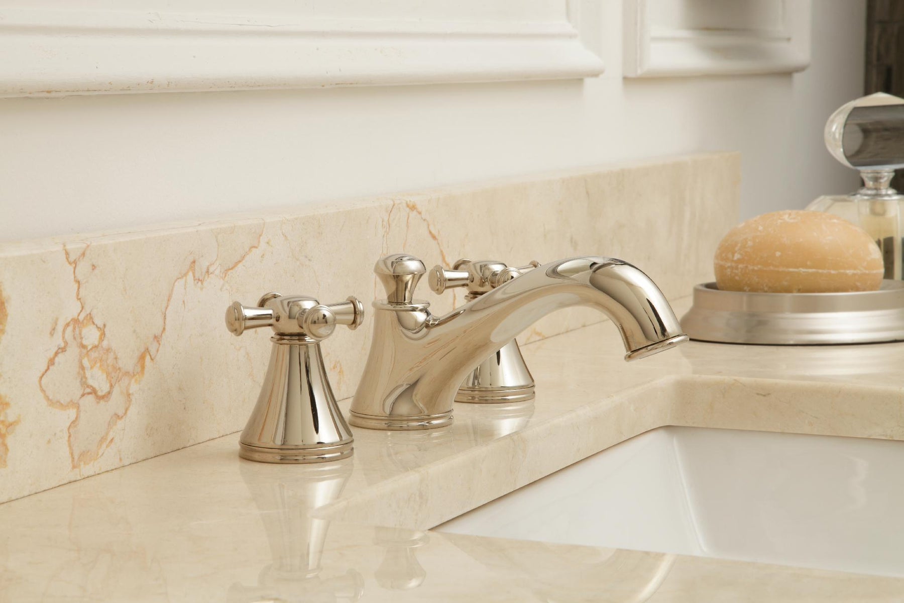 • Included parts: Spout, handles, hot and cold water valves, valve-to-spout hoses, pop-up drain and rod