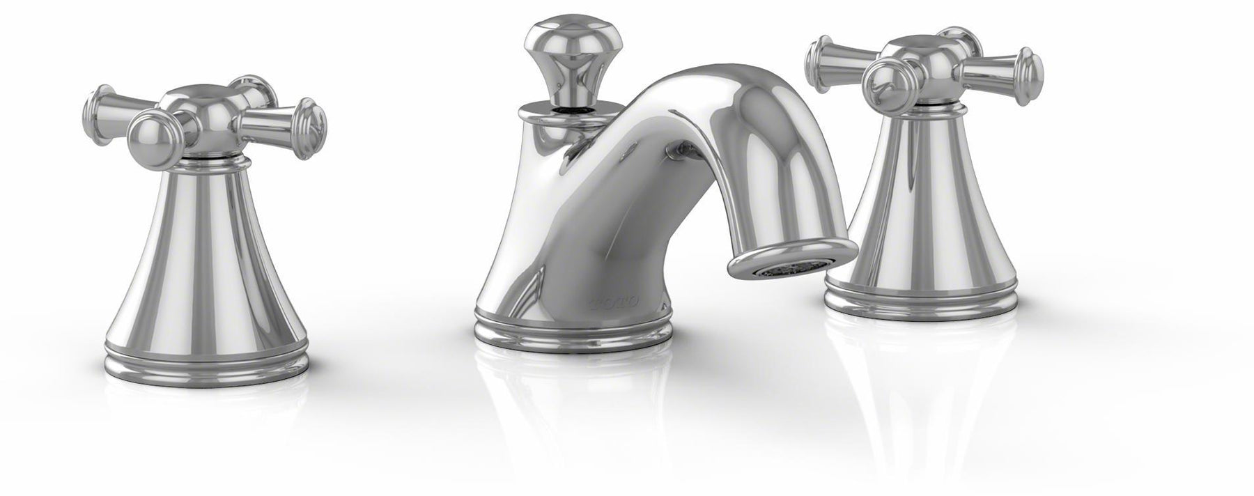 The TOTO Vivian Two Cross Handle Widespread 1.5 GPM Bathroom Sink Faucet is elegantly designed in a classic style that will add beauty to any bathroom space. With its solid construction and finish, the Vivian widespread faucet will add beauty and elegance for years to come. The faucet is adjustable for six to twelve inch spread installations, allowing flexibility and versatility within your bathroom space. The double cross handles allow for complete control over water volume and temperature. The aerated 1.5 GPM flow rate enables you to conserve water, yet does not diminish the performance of the faucet. The faucet is WaterSense certified. Included items: Spout, handles, hot and cold water valves, valve-to-spout hoses, pop-up drain and rod. Items purchased separately: water supply hoses